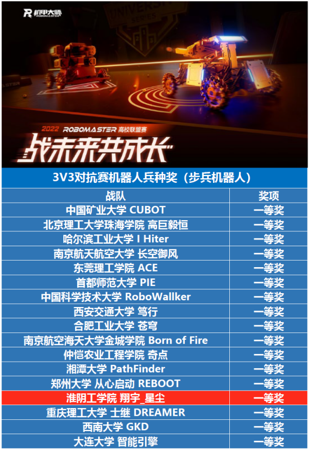 “3V3对抗赛机器人兵种”国赛获奖名单