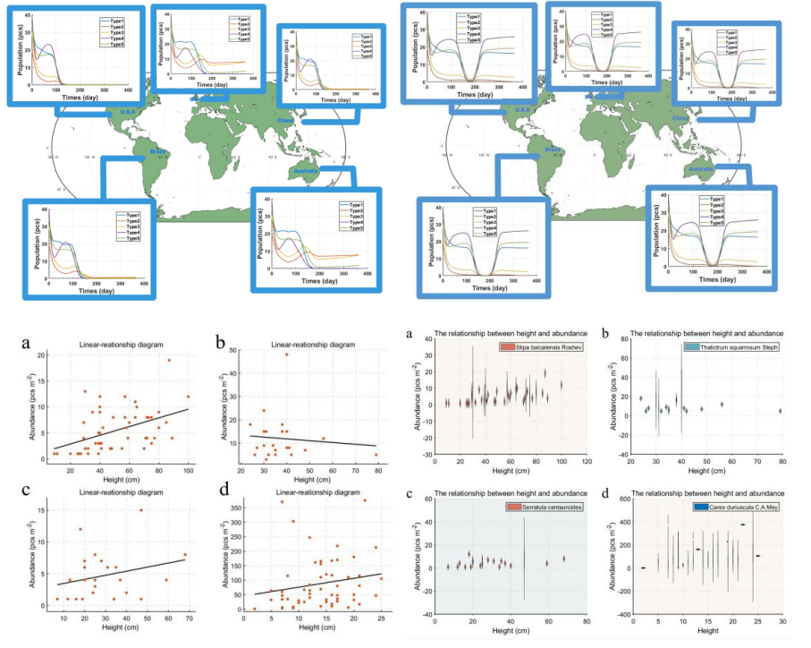 由精英1201班刘涵裕、费鹏宇、精英1202班侍雅宁3位同学组成的团队选择了“Drought-Stricken Plant Communities”问题作为研究对象,通过四阶五阶龙格库塔算法对建立的微分方程模型进行求解,通过改进Logistic阻滞增长模型,构建出了Mutiple Species Logistic Model(MSL模型)适用于该类问题的解决。同时,该模型可以很好地预测植物群落在暴露于各种不规则的天气周期中的变化情况,因此实验证明使用改进后的模型从气候、降水、干旱和雨季持续时间、污染和物种多样性角度进行分析,对这些影响因素进行定量化、规范化的处理,能取得较好的预测效果,是解决干旱对植物群落影响问题的有力科学模型。