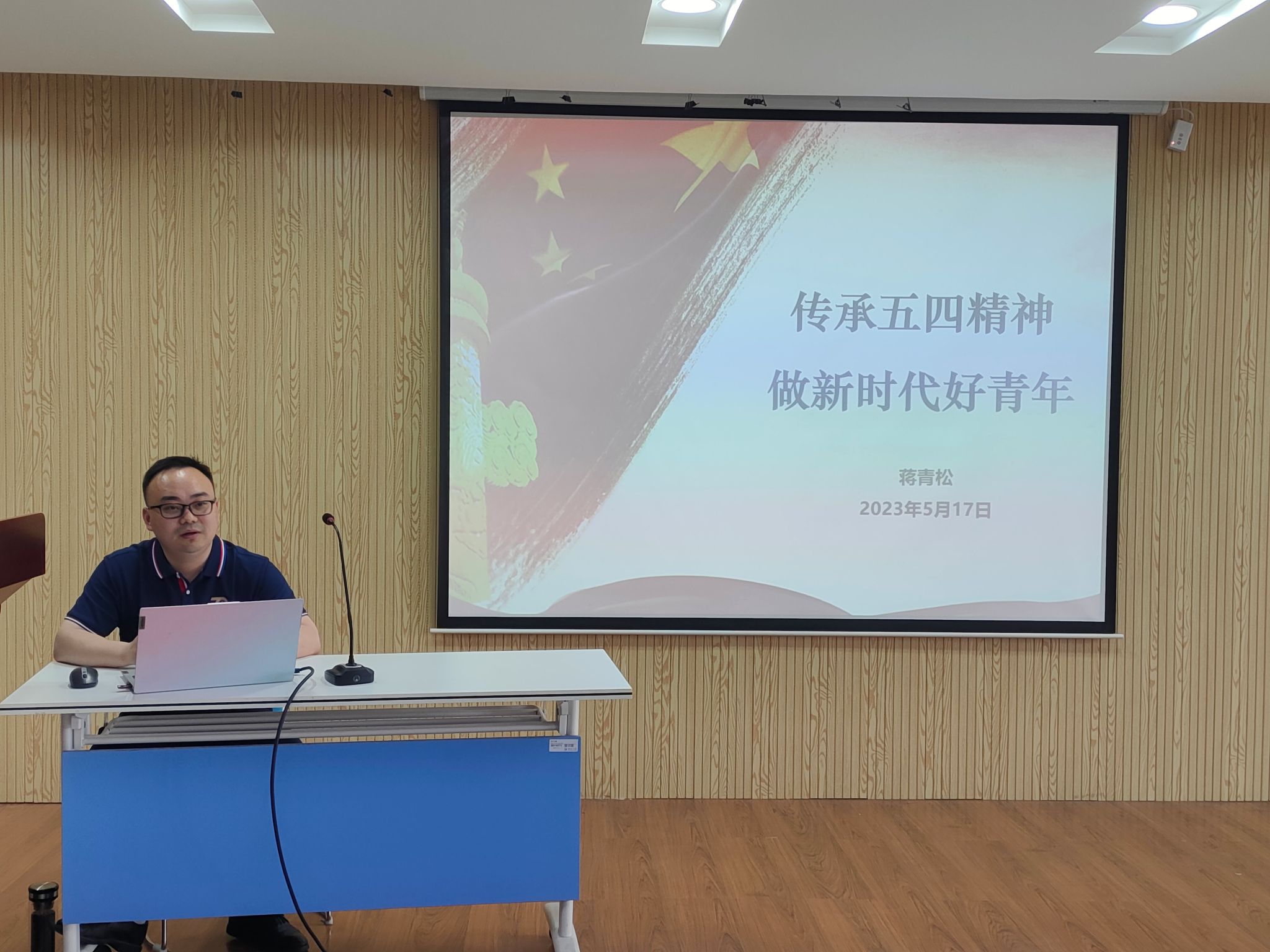 党委书记蒋青松以“传承五四精神 做新时代好青年”为题,为员工讲授专题党课。蒋青松从“五四运动”、“五四精神”、“弘扬五四精神”、“总书记的殷切希望”四个方面展开,指出作为新时代青年应该牢记习近平总书记的嘱托,传承和弘扬五四精神,树立远大理想,练就过硬本领,担当时代责任。