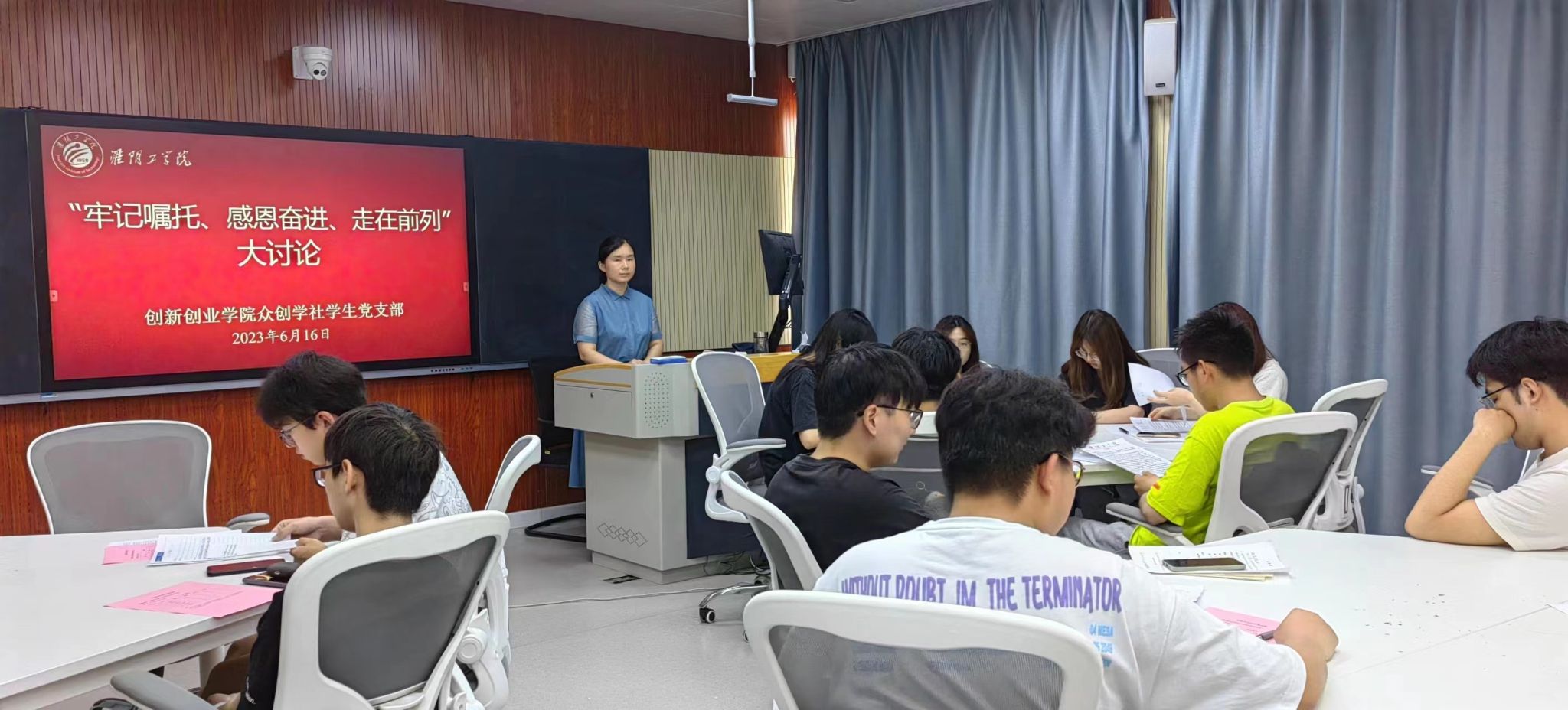 众创学社员工党支部在开展“牢记嘱托 感恩奋进 走在前列”大讨论过程中,全体员工党员积极建言献策,纷纷表示要将主题教育融入日常、抓在经常,不断提高运用党的创新理论分析解决问题的能力水平。