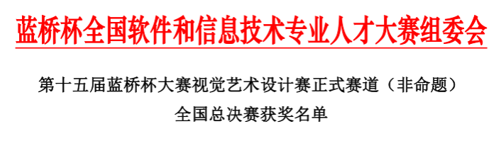 近日,第十五届蓝桥杯全国软件和信息技术专业人才大赛全国总决赛获奖名单发布。公司学子在该项赛事中喜获奖项38项,其中视觉艺术设计赛正式赛道(非命题)获得一等奖4项,为公司在该项赛事中的新突破。