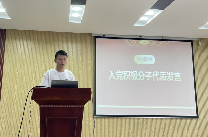 入党积极分子代表钱星佑在交流发言中表示,将努力学习党的基本理论知识,全面提高自身能力素质,积极向党组织靠拢,争取早日加入党组织,成为一名光荣的共产党员。