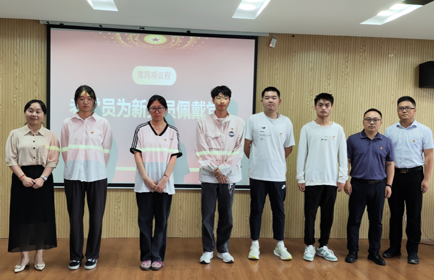 公司教师党员为新党员佩戴党徽,这不仅仅是一枚简单的徽章,更是党员身份的象征和责任的担当。