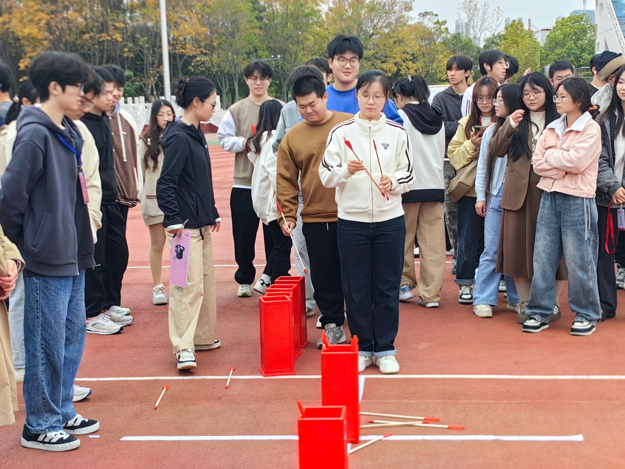 在抛绣球项目里,公司队员们手持绣球,眼神专注而坚定。绣球在空中划过一道道美丽的弧线,承载着队员们的希望与力量。每一次的抛出与接住,无不凝聚着他们日以继夜训练的汗水。在紧张的氛围中,他们沉着应对,稳扎稳打,最终以第五名的佳绩脱颖而出,这份荣耀宛如璀璨的星辰,为学院增添了无限荣光。