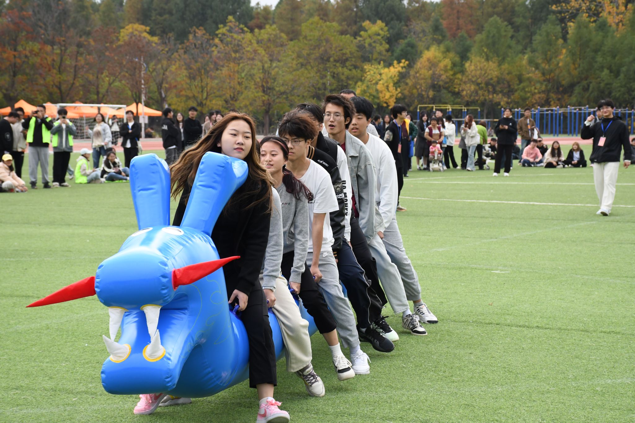 旱地龙舟项目更是展现出公司学子非凡的凝聚力。队员们踏上 “龙舟”,齐声呐喊,步伐整齐划一,仿佛化作了一条真正的巨龙在赛场上奔腾。他们的眼神中燃烧着必胜的火焰,每一次的蹬地都充满力量,手中紧握 “龙舟”,心与心紧密相连。在齐心协力之下,最终荣获第六名的佳绩,生动地诠释了团结协作的强大力量和拼搏到底的精神。