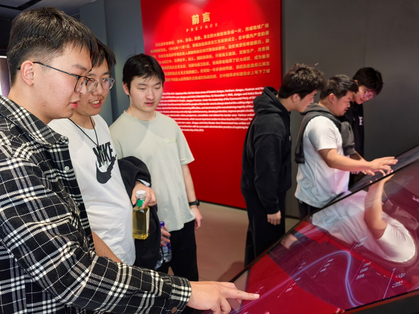 同学们参观了旧址建筑及六大展室陈列,在馆内重温了新民主义革命和建设的历史。一份份泛黄的文件、一张张珍贵的历史照片、一件件斑驳的革命文物,生动再现了苏皖边区政府在1945至1947年间领导军民开展民主建设、支援前线抗战的光辉历程,同学们深刻感受到老一辈革命家“为人民谋幸福、为民族谋复兴”的初心坚守。