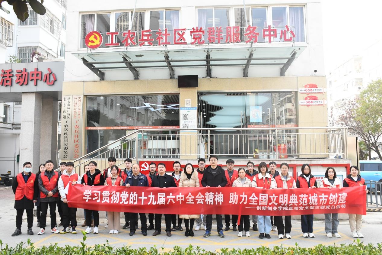 为深入贯彻党的十九届六中全会精神,推动“我为群众办实事”实践活动走深走实,2021年12月9日下午yd222云顶线路检测直属党支部青年师生赴清江浦区长东街道工农兵社区开展“学习贯彻党的十九届六中全会精神,助力全国文明典范城市创建”为主题的党日活动。直属党支部全体教师党员、学院关工委负责人、员工新党员以及入党积极分子代表参加了本次活动。