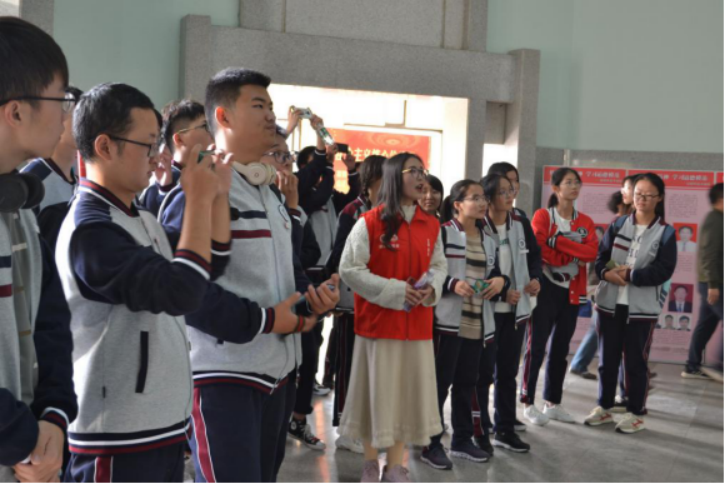 宣誓完毕后,同学们排队有序瞻仰了周总理汉白玉坐像,在陈列厅中认真聆听讲解员讲述周总理的生平事迹。