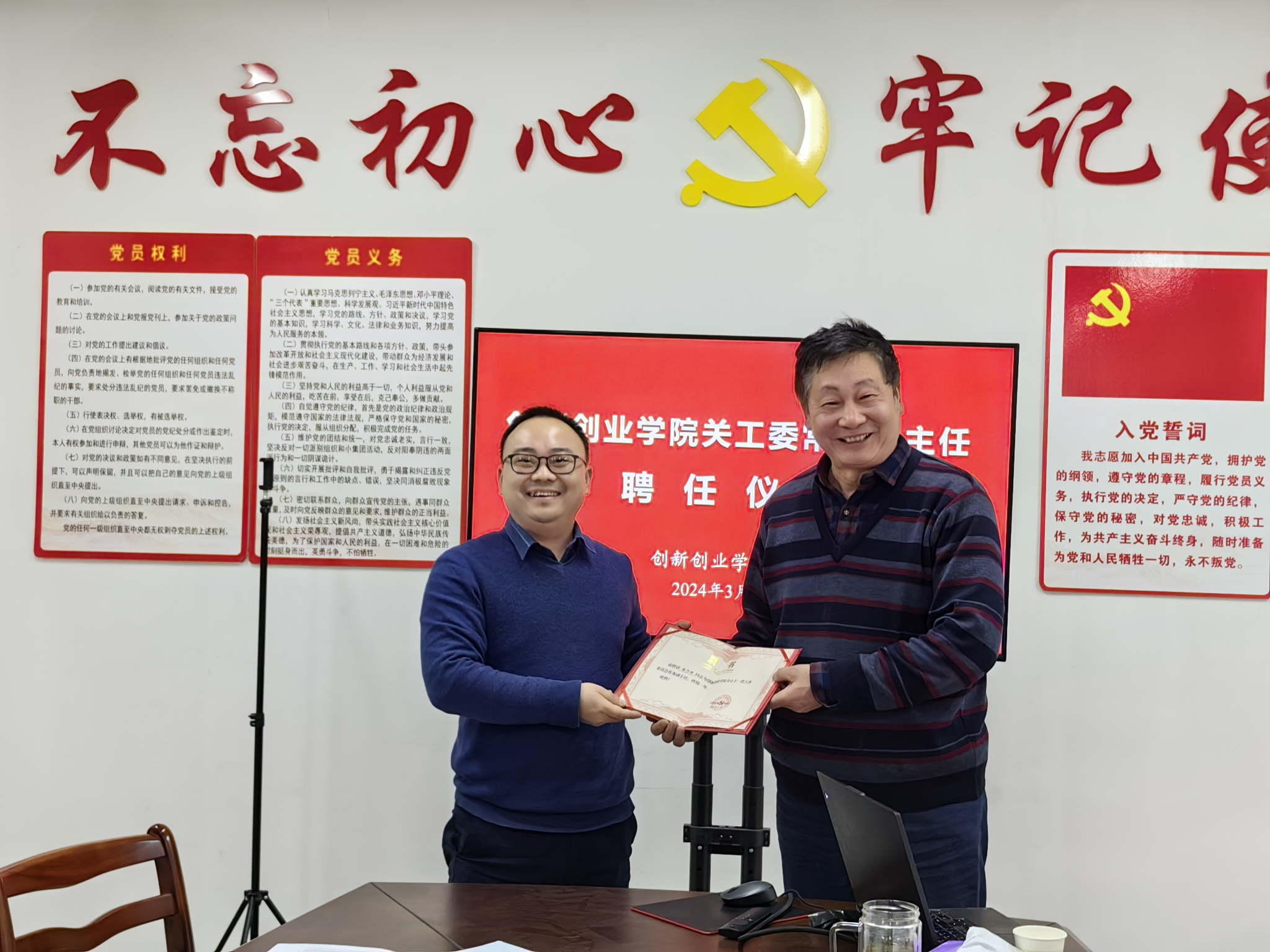 会上还举办了学院关工委常务副主任的聘任仪式,聘请校关工委秘书长张乃钟担任学院关工委常务副主任,蒋青松为张乃钟颁发聘书。