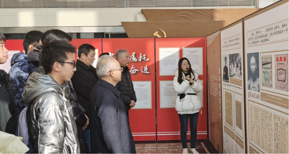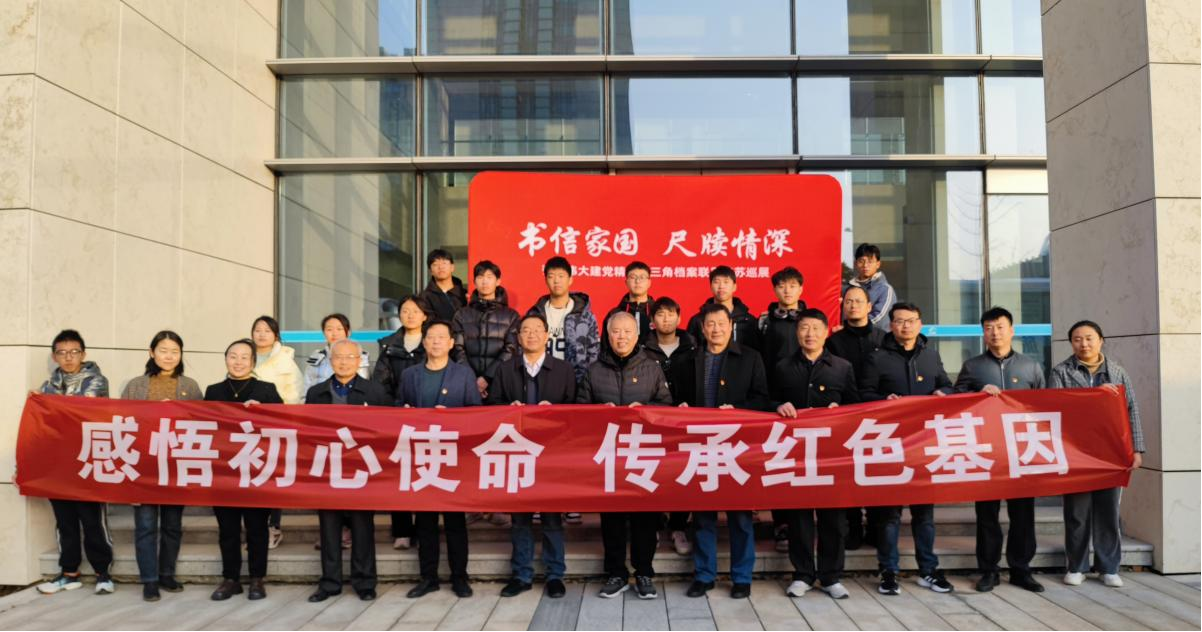 一行人首先参观了“书信家国,尺牍情深——弘扬伟大建党精神·长三角档案联展”,该展汇集长三角地区联合展示的红色档案资源,以档案视角展现党的奋斗历史和伟大成就。展览选取毛泽东、周恩来、邓小平等老一辈无产阶级革命家和李大钊、瞿秋白、张太雷、恽代英、彭湃等革命先烈,以及钱学森、华罗庚、陆立才等新中国各个时期的优秀共产党员典型代表,通过一封封家书、一张张照片、一页页日记,展现了各个时期中国共产党人践行初心使命,团结带领广大人民群众,实现从站起来、富起来到强起来的壮阔图景,生动诠释了中国共产党人把家庭命运融入到国家和民族命运之中的家国情怀,展示了伟大建党精神的丰富内涵与鲜明特质。