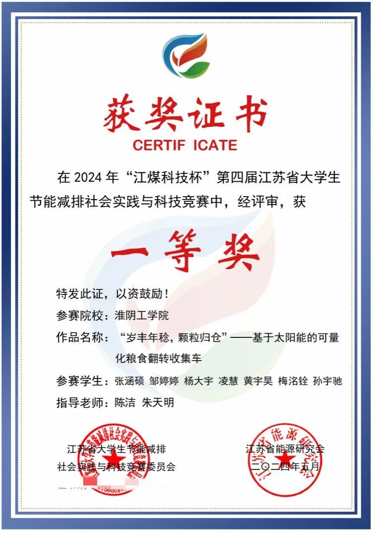 2024年05月 第四届江苏省老员工节能减排社会实践与科技竞赛省赛一等奖 江苏省老员工节能减排社会实践与科技竞赛组委会