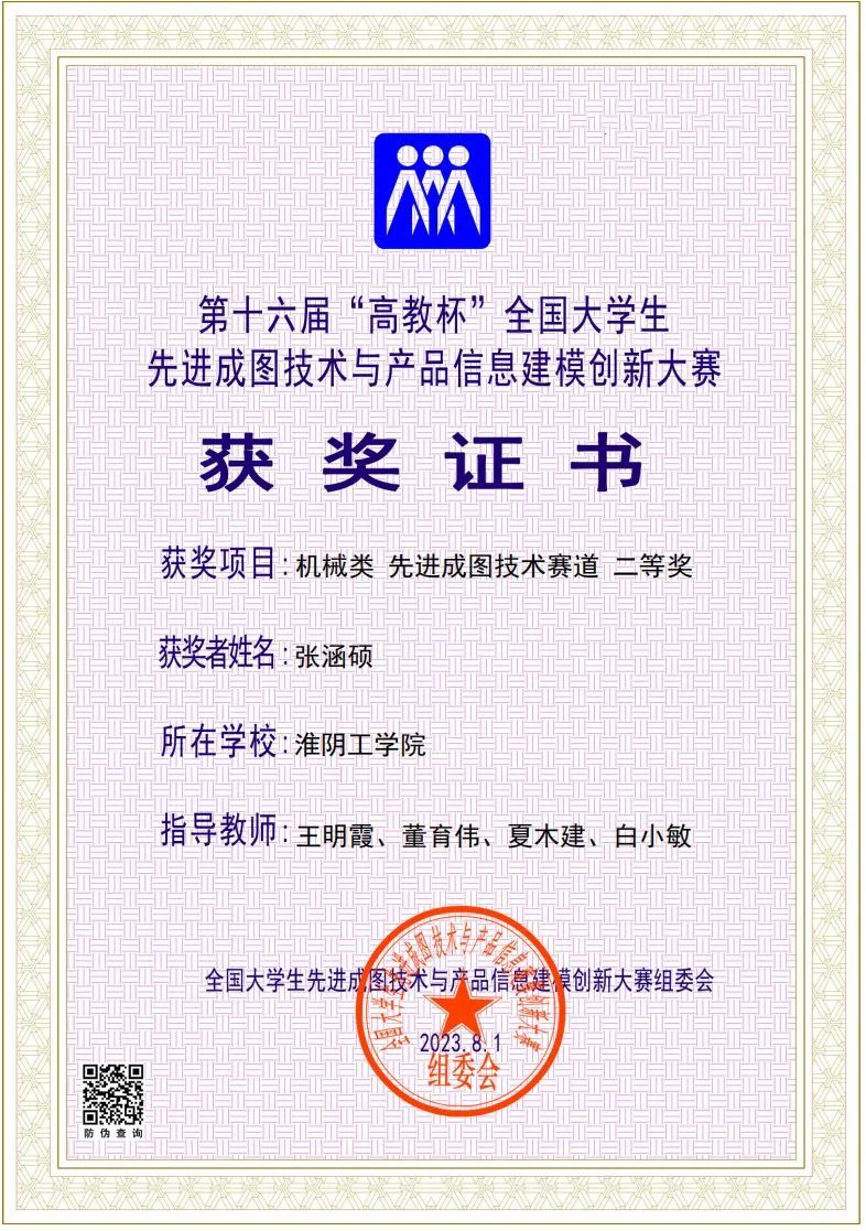 2023年08月 第十六届“高教杯”全国老员工先进成图技术与产品信息建模创新大赛国赛二等奖 全国老员工先进成图技术与产品信息建模创新大赛组委会