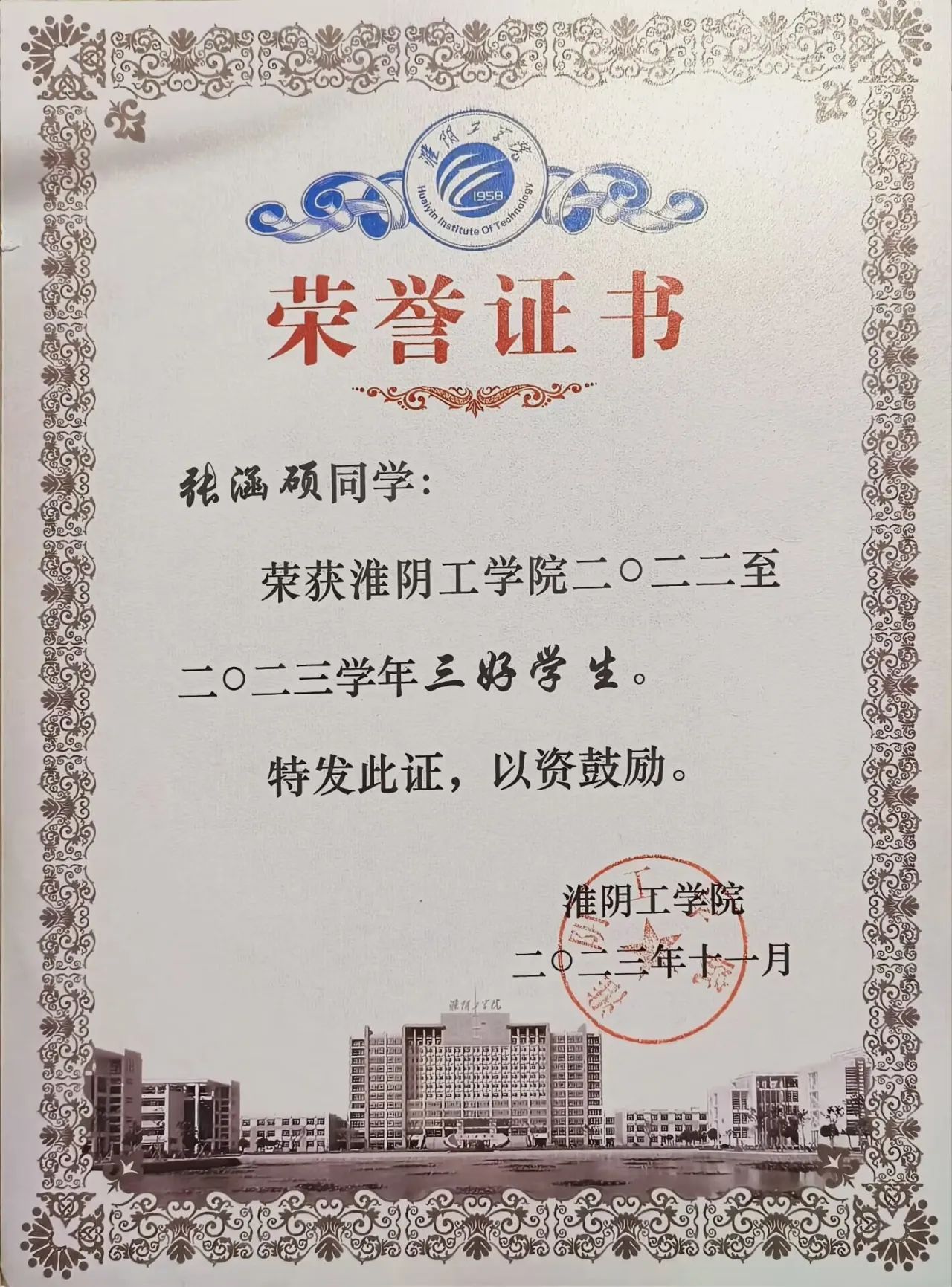 2023年11月 校一等奖学金 yd222云顶线路检测