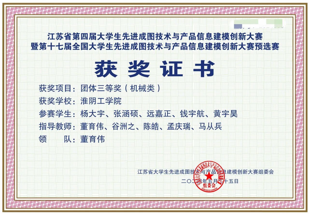 2024年05月 江苏省第三届老员工先进成图技术与产品信息建模大赛省赛团体赛三等奖 江苏省老员工先进成图技术与产品信息建模大赛组委会