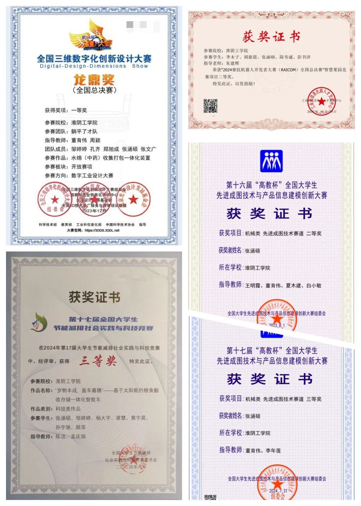 在校期间,张涵硕积极参加各类学科竞赛,并取得了丰硕的成果。张涵硕累计获得学科竞赛奖项共计17项,其中国家级5项,省级15项。