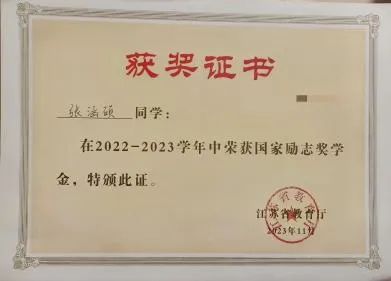 2023年11月 国家励志奖学金 江苏省教育厅