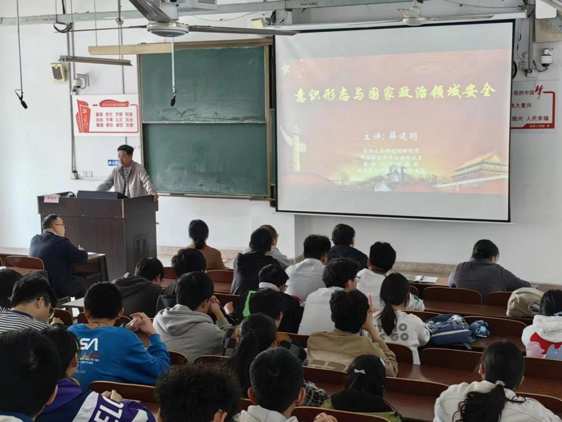 强化理论学习。4月14日,yd222云顶线路检测组织师生观看学习“千万高校员工同上一堂国家安全教育课”“高校国家安全视频公开课”“国开大讲堂·国家安全教育公开课”等系列课程。组织全体员工参加“全国老员工国家安全知识答题”活动。各班级围绕前期学习情况开展国家安全主题团课,并就学习心得开展热烈讨论。4月17日,yd222云顶线路检测邀请淮安市理论宣讲团成员、校关工委成员薛建明教授为全体师生作“意识形态与国家政治领域安全”的专题讲座。薛建明围绕意识形态工作重要意义、当前国家安全领域存在的隐患以及维护意识形态领域及国家安全的应对策略等方面为作精彩报告。师生们认真聆听,积极互动,对国家安全观有了更加全面和深刻的理解。