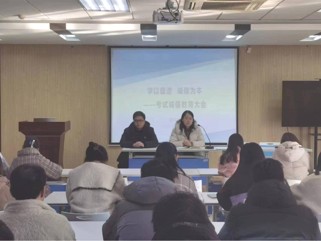 会上,孙倩娜、王云飞分别就诚信考试和假期安全等工作进行布置。
