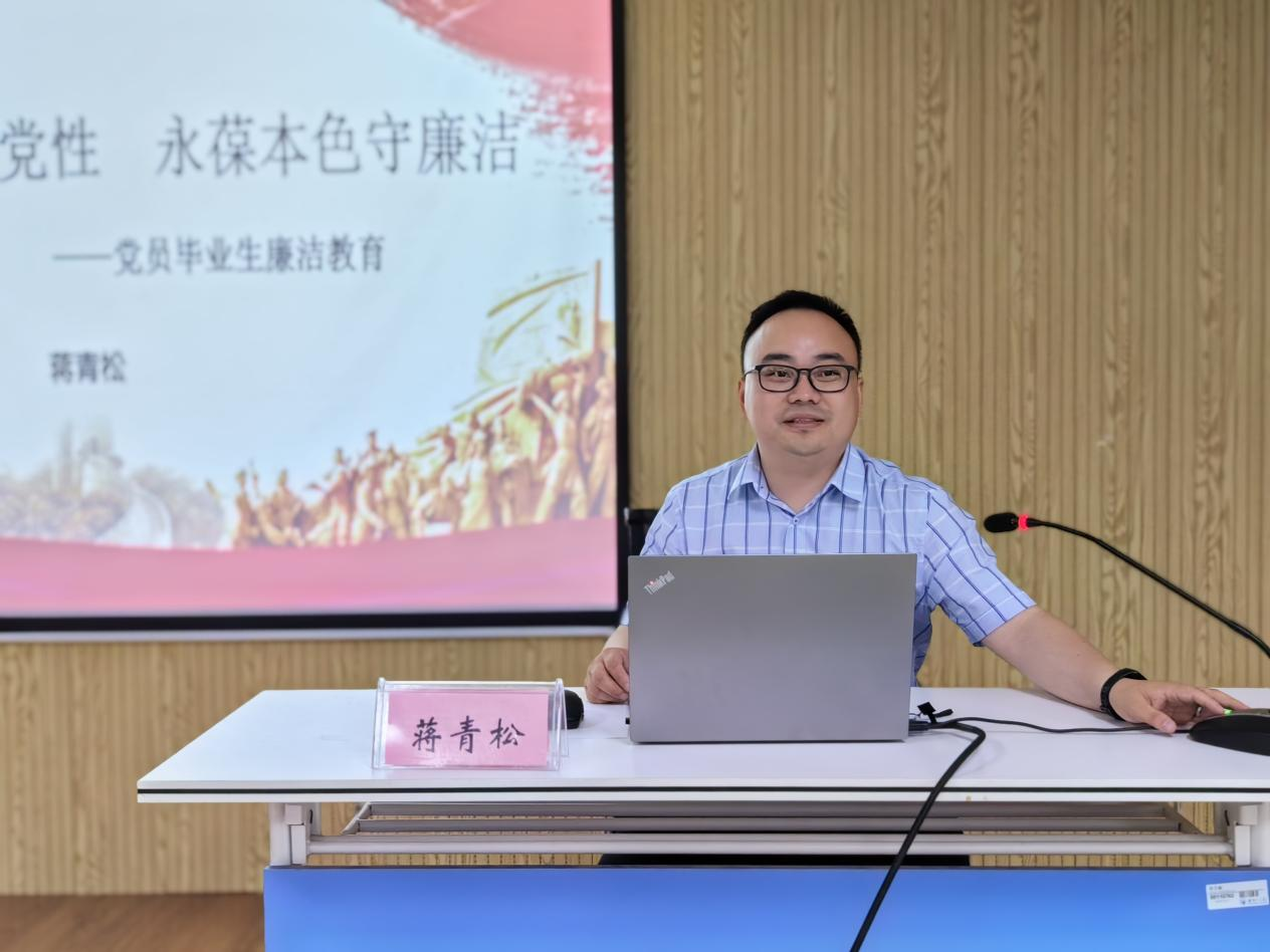 蒋青松指出,党员同学即将踏上人生的新征程,要牢固树立不负人民的家国情怀,将个人理想融入国家发展、民族大义中,要爱国、爱党、爱社会,爱家、爱家人、爱母校,反对一切不正之风。始终做到坚定理想信念,牢记初心使命,把遵规守纪刻印在心,做到以青春之我,奋斗之我,奋力书写为中国式现代化挺膺担当的青春篇章。